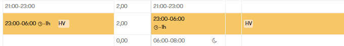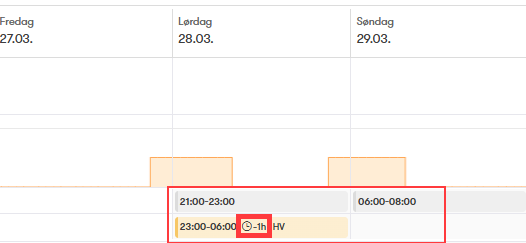 Vakter som legges inn, og som passerer 02:00 - 03:00 - vil vises som (-1) i dette tilfelle som følge av overgang fra Vinstertid til Sommertid.